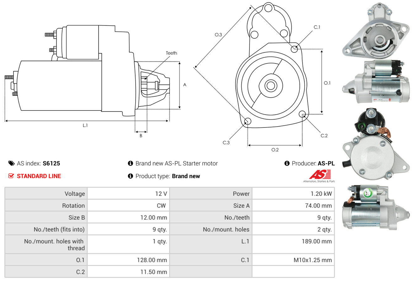 AS-PL je renomovaná evropská značka se sídlem v Polsku, která se specializuje na výrobu a distribuci startérů, alternátorů a jejich komponentů. Společnost vznikla v roce 1992 a dnes dodává více než 20 000 různých produktů do více než 100 zemí světa. AS-PL nabízí jak kompletní jednotky, tak i náhradní díly a komponenty pro opravy. [Více zde]