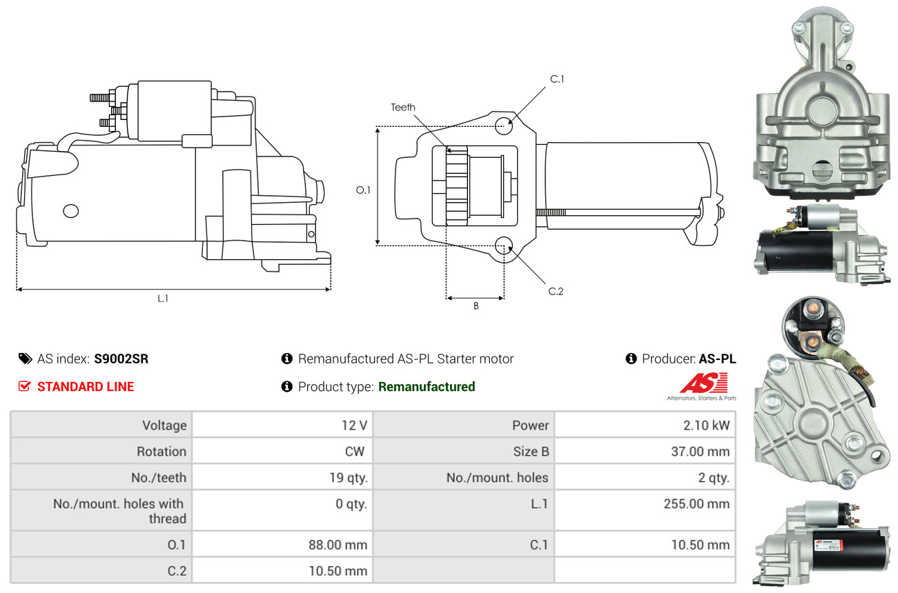 AS-PL je renomovaná evropská značka se sídlem v Polsku, která se specializuje na výrobu a distribuci startérů, alternátorů a jejich komponentů. Společnost vznikla v roce 1992 a dnes dodává více než 20 000 různých produktů do více než 100 zemí světa. AS-PL nabízí jak kompletní jednotky, tak i náhradní díly a komponenty pro opravy. [Více zde]