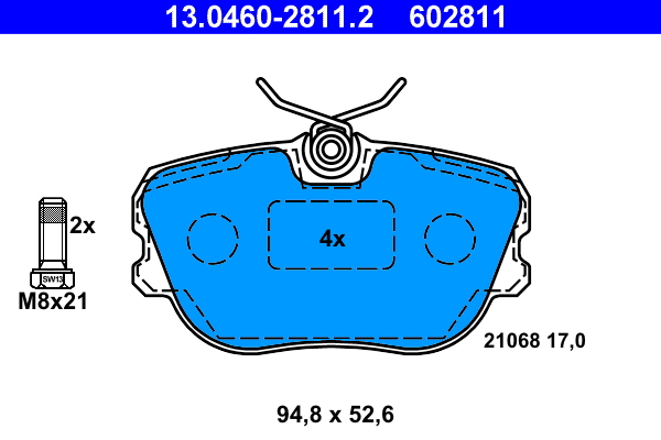 ATE 13.0460-2811.2 - Sada brzdových destiček, vždy 4 kusy v sadě