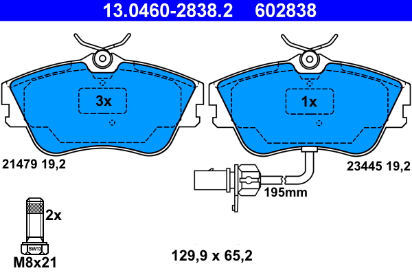 ATE 13.0460-2838.2 - Sada brzdových destiček, vždy 4 kusy v sadě
