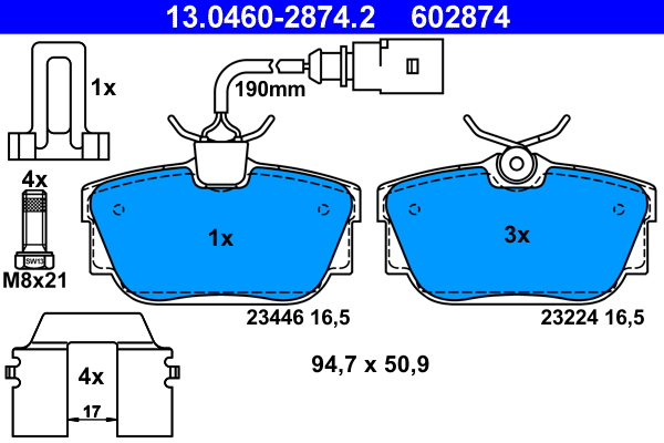 ATE 13.0460-2874.2 - Sada brzdových destiček, vždy 4 kusy v sadě