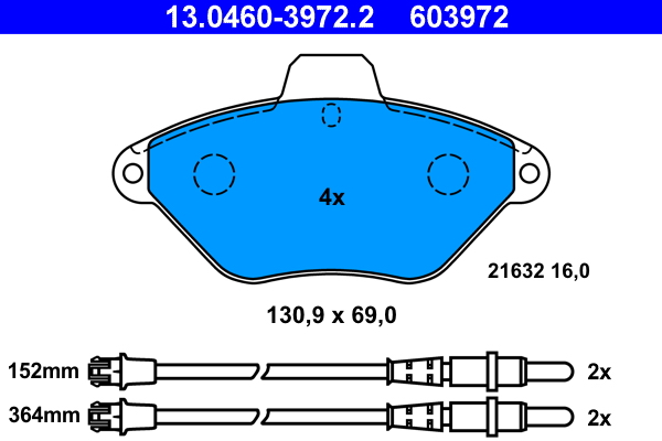 ATE 13.0460-3972.2 - Sada brzdových destiček, vždy 4 kusy v sadě