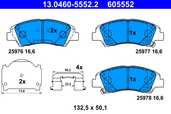 ATE 13.0460-5552.2 - Sada brzdových destiček, vždy 4 kusy v sadě