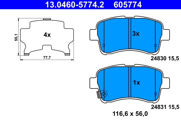 ATE 13.0460-5774.2 - Sada brzdových destiček, vždy 4 kusy v sadě