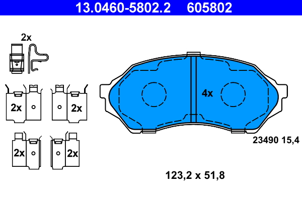 ATE 13.0460-5802.2 - Sada brzdových destiček, vždy 4 kusy v sadě