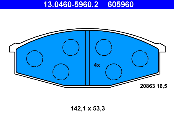 ATE 13.0460-5960.2 - Sada brzdových destiček, vždy 4 kusy v sadě