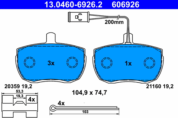 ATE 13.0460-6926.2 - Sada brzdových destiček, vždy 4 kusy v sadě