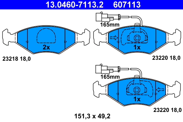 ATE 13.0460-7113.2 - Sada brzdových destiček, vždy 4 kusy v sadě
