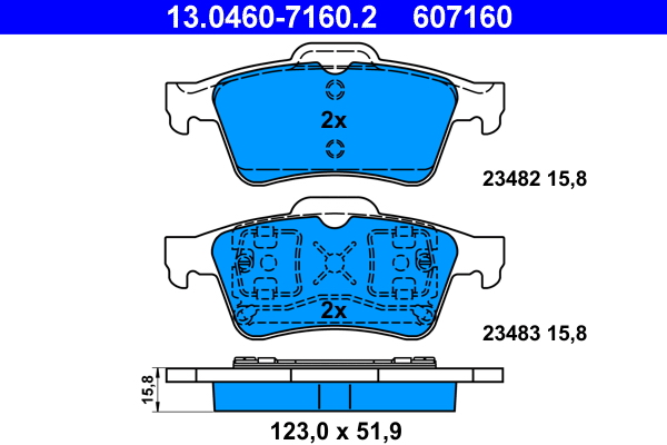ATE 13.0460-7160.2 - Sada brzdových destiček, vždy 4 kusy v sadě