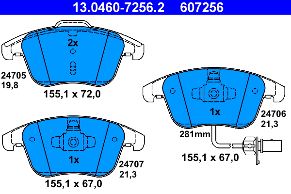 ATE 13.0460-7256.2 - Sada brzdových destiček, vždy 4 kusy v sadě