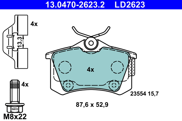 ATE 13.0470-2623.2 ATE Ceramic - Sada brzdových destiček, vždy 4 kusy v sadě