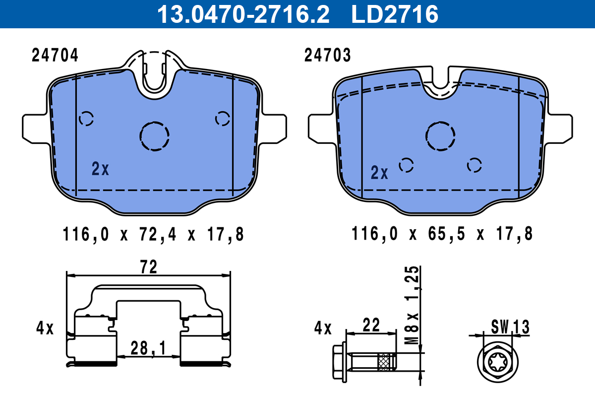 ATE 13.0470-2716.2 ATE Ceramic - Sada brzdových destiček, vždy 4 kusy v sadě