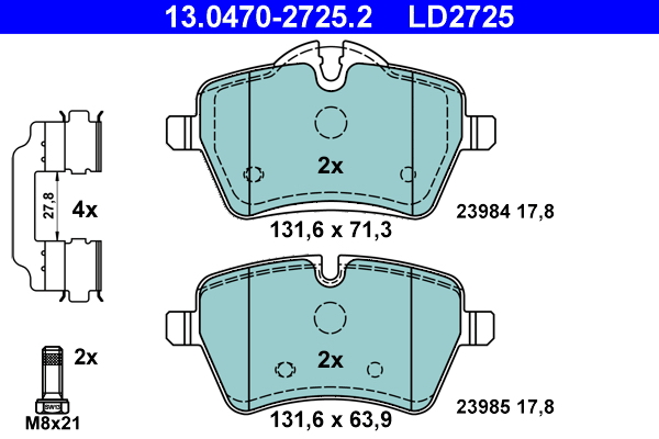 ATE 13.0470-2725.2 ATE Ceramic - Sada brzdových destiček, vždy 4 kusy v sadě