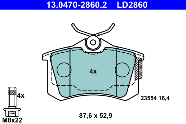 ATE 13.0470-2860.2 ATE Ceramic - Sada brzdových destiček, vždy 4 kusy v sadě