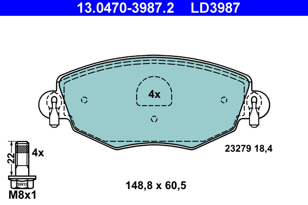 ATE 13.0470-3987.2 ATE Ceramic - Sada brzdových destiček, vždy 4 kusy v sadě