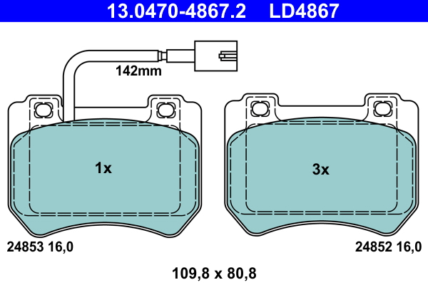 ATE 13.0470-4867.2 ATE Ceramic - Sada brzdových destiček, vždy 4 kusy v sadě