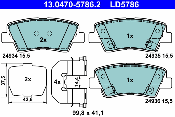 ATE 13.0470-5786.2 ATE Ceramic - Sada brzdových destiček, vždy 4 kusy v sadě