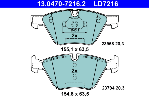 ATE 13.0470-7216.2 ATE Ceramic - Sada brzdových destiček, vždy 4 kusy v sadě