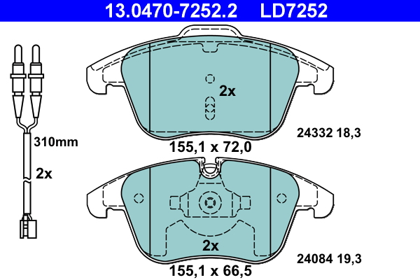 ATE 13.0470-7252.2 ATE Ceramic - Sada brzdových destiček, vždy 4 kusy v sadě