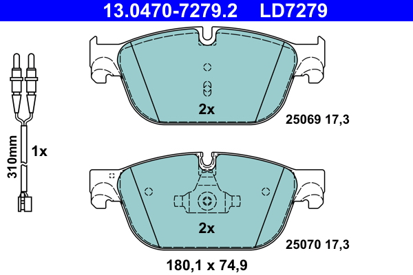 ATE 13.0470-7279.2 ATE Ceramic - Sada brzdových destiček, vždy 4 kusy v sadě