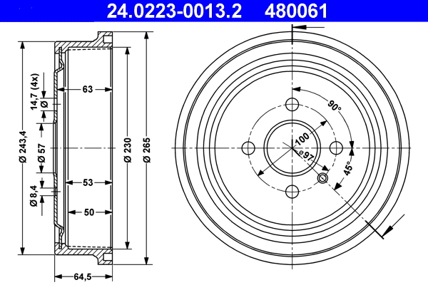 ATE 24.0223-0013.2 - Brzdový buben