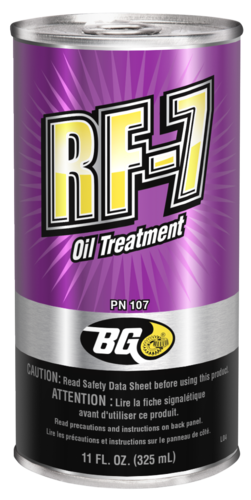 Přípravek pro automobily, které mají zvýšenou spotřebu motorového oleje. Unikátní složení snižuje spotřebu oleje a emise. Pomáhá v lepší funkci pístních kroužků, zvyšuje kompresi tím, že zvýší viskozitu oleje. Obsahuje aditiva, která snižují oxidaci a houstnutí oleje. Kompatibilní se všemi oleji na ropné bázi. Obnovuje funkci těsnění. Zvýšená spotřeba oleje znamená zanesený spalovací systém, EGR systém a katalyzátor. BG RF-7 je kompatibilní se syntetickými i minerálními oleji.