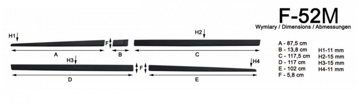 Boční lišty mají přesné rozměry a perfektně pasují na dveře vozu Mercedes Vito.