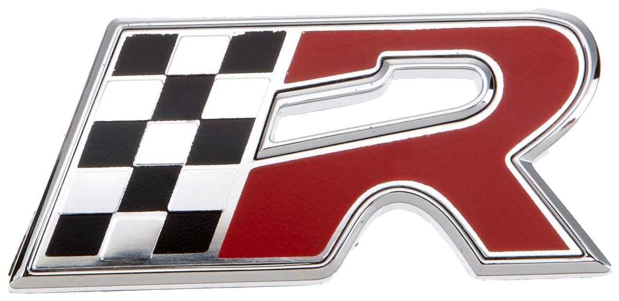 Car logo "R s vlajkou"barva: chromové – červenésamolepicí 1 kus. Rozměry loga: šířka 5,5 cm, výška 2,5 cm