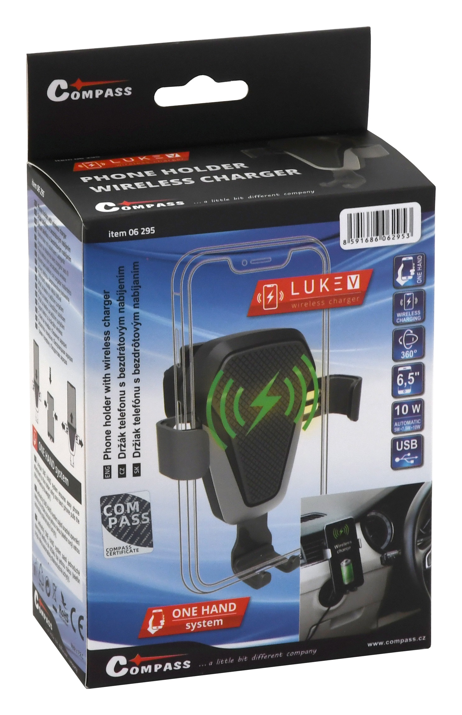 Compass 06295 - Držák telefonu LUKE-V bezdrátové nabíjení 10W silver