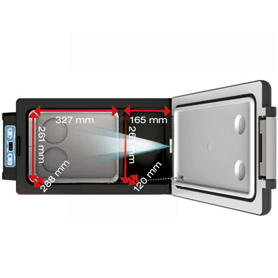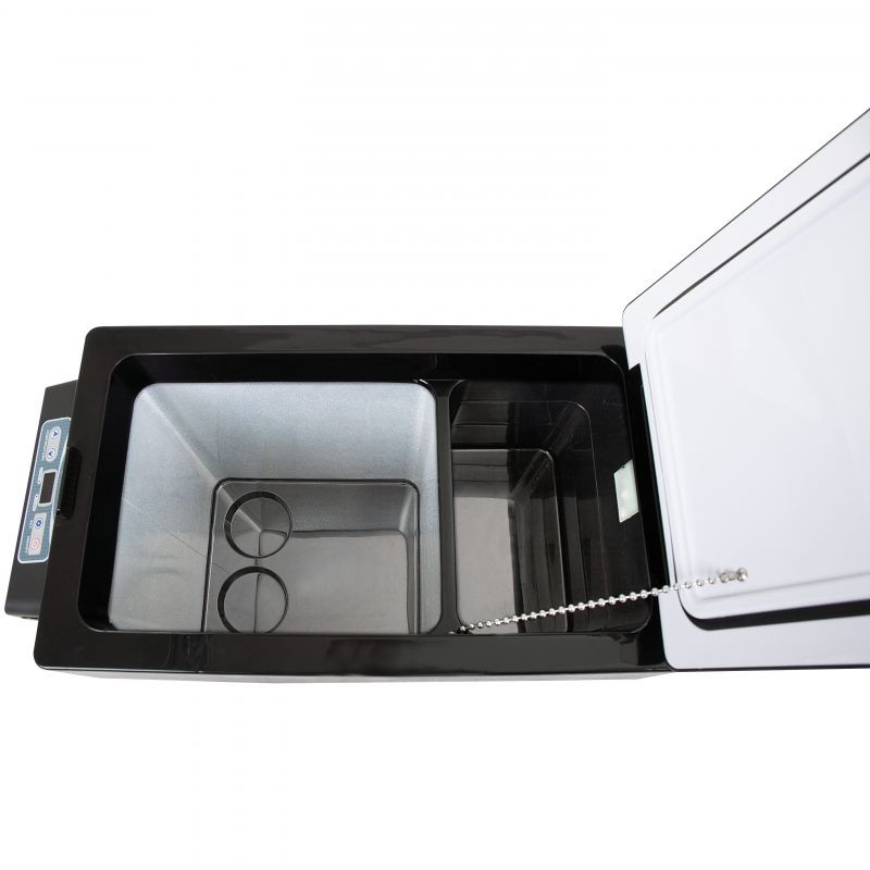 Uvnitř autochladničky se nachází 2 oddělené boxy pro chladicí a mrazicí sekci a automatické LED osvětlení.