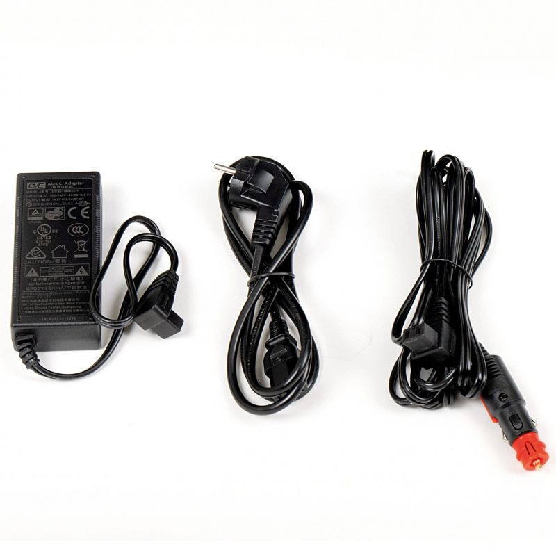 Chladicí box lze napájet 12V/24V zástrčkou automobilu nebo z běžné 230V zásuvky. Délka napájecího kabelu je 250cm.