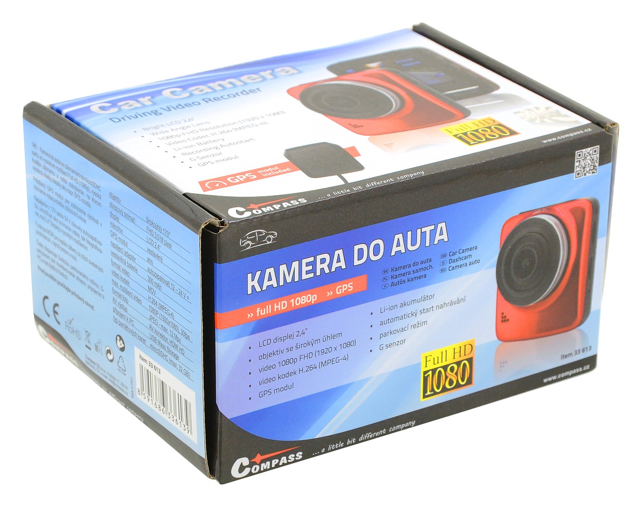 Compass 33613 - Kamera do auta Full HD 2,4" červená GPS
