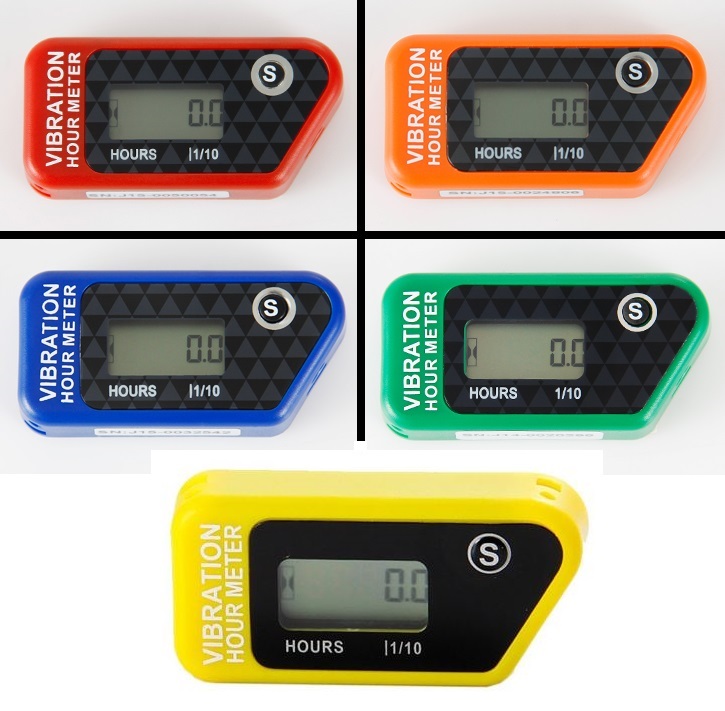 Univerzální, bezdrátové vibrační počítadlo na motohodiny (MTH) Vibrační měřič motohodin počítá čas (najeté motohodiny) na základě vibrací, které jsou tvořeny nastartovaným motorem. Záznam je určen k vypočítávání servisního intervalu (výměna oleje, kontrola ventilových vůlí atd.), pro celkovou kontrolu provozu apod. Přístroj zaznamenává jak celkově najetý čas, tak i dílčí, který lze vynulovat tlačítkem „S" Připevnit lze např. na rám motocyklu. Vodotěsné – odolnost IP68 Vyberte si červenou, modrou, oranžovou, žlutou nebo zelenou barevnou variantu podle vašeho přání. Výhody: - snadná instalace - bez nutnosti zapojování - citlivost lze nastavit na vysokou nebo nízkou Baterie je součástí přístroje.