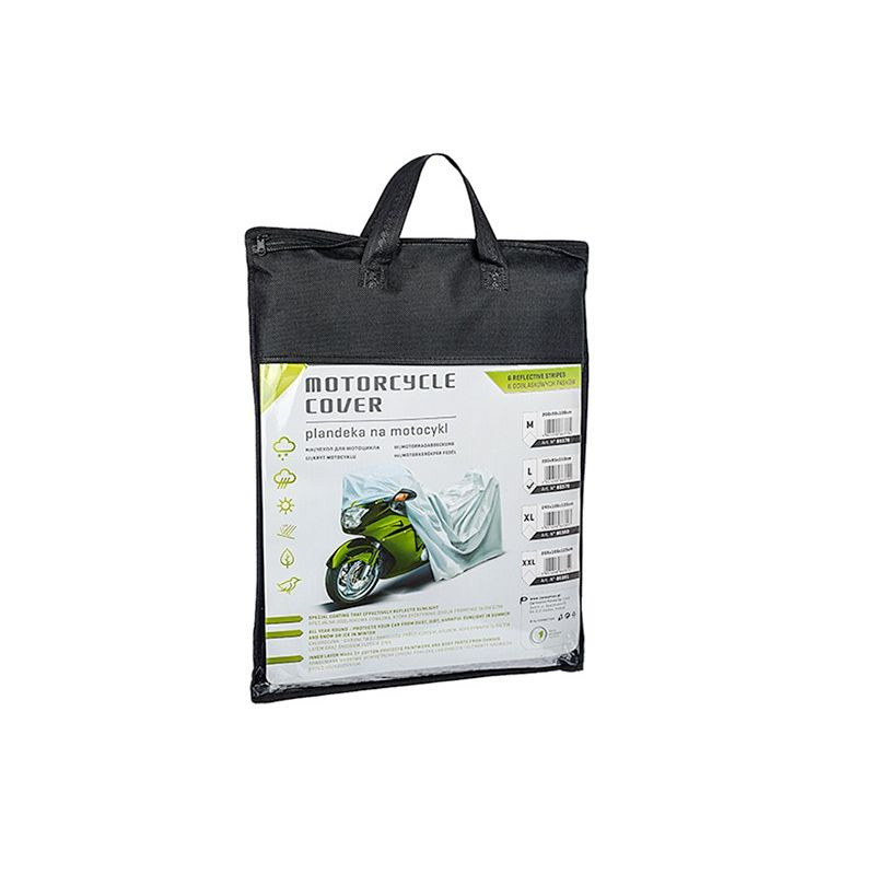 Plachta na motorku, která chrání proti slunečním paprskům, vodě, špíně, prachu a povětrnostním podmínkám. Po obvodu plachty je elastický lem, díky kterému je nasazení na motorku velmi jednoduché.