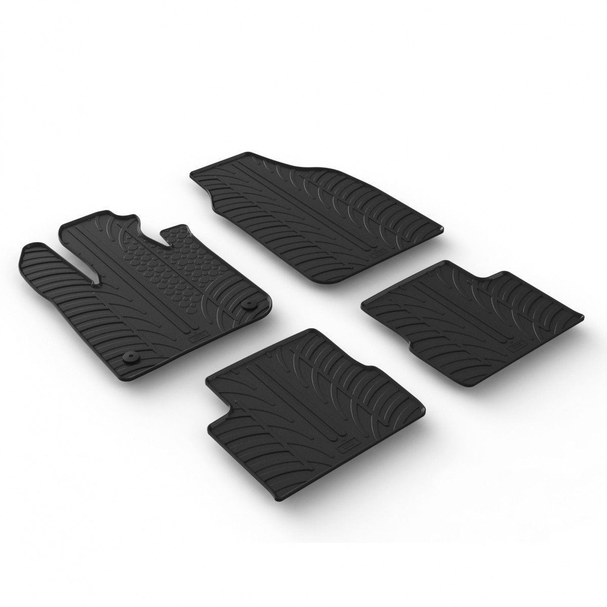 Gumové autokoberce Gledring pro vůz Fiat 500, mají 1 cm vysoký okraj, který chrání původní koberec auta před vodou, tajícím sněhem a agresivní solí.