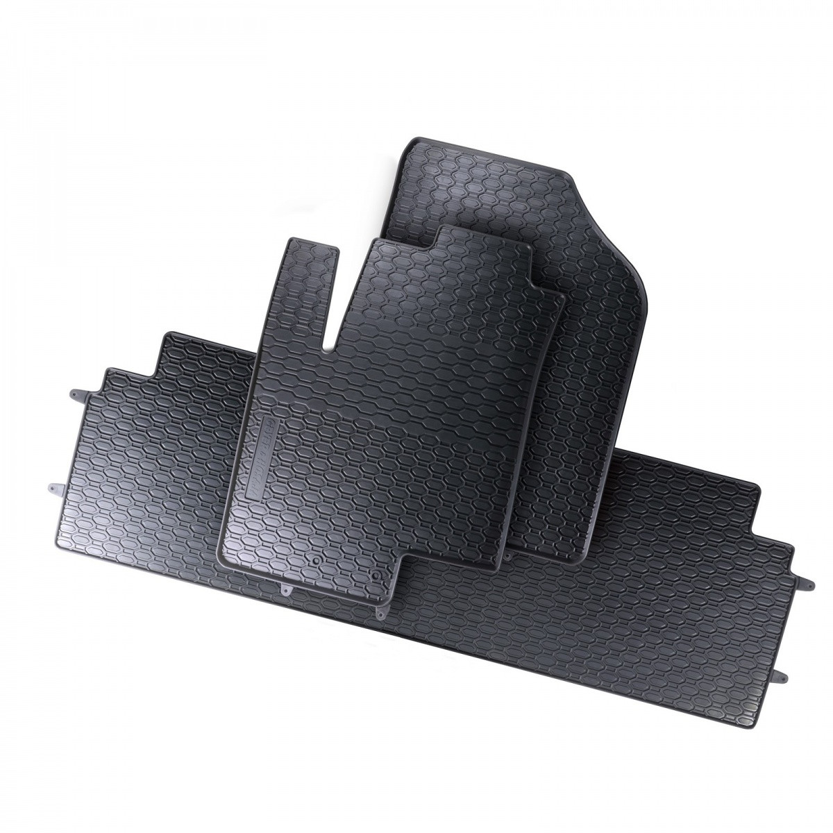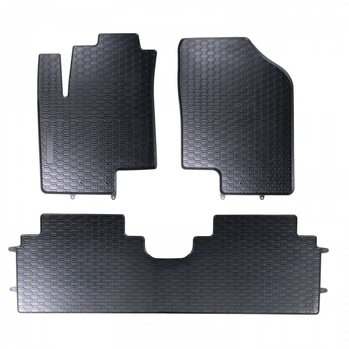 Robustní gumové autokoberce pro vůz Kia Venga. Mají dezén ve tvaru pláství, díky kterému nedochází k přelévání vody nebo tajícího sněhu po kobercích. Okraj autokoberců je přibližně 1 cm vysoký.