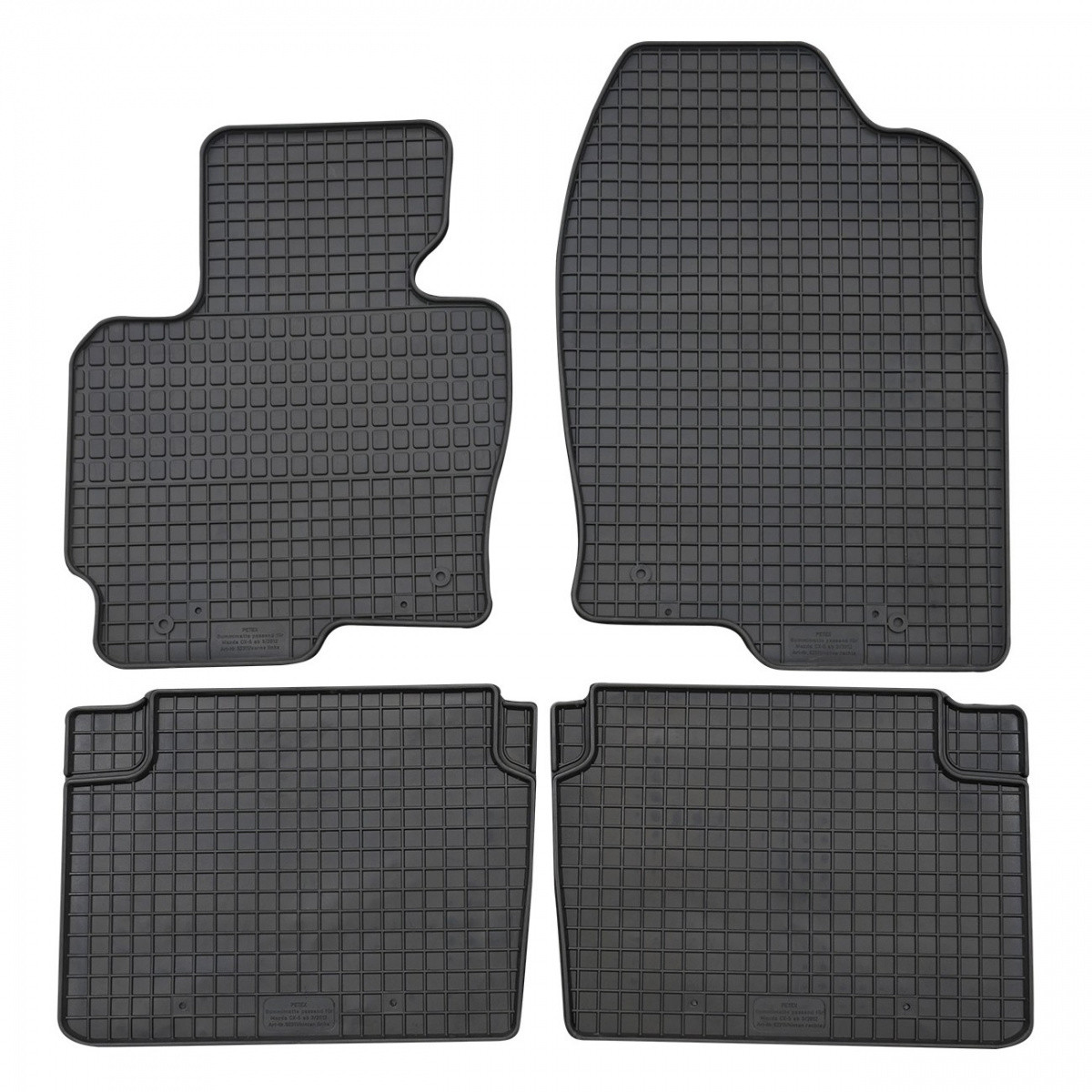 Kvalitní gumové autokoberce pro vůz Mazda CX-5, které mají tradiční (čtverečkovaný) design, díky kterému nedochází k přelévání vody nebo tajícího sněhu po kobercích. Okraj autokoberců je přibližně 1 cm vysoký.