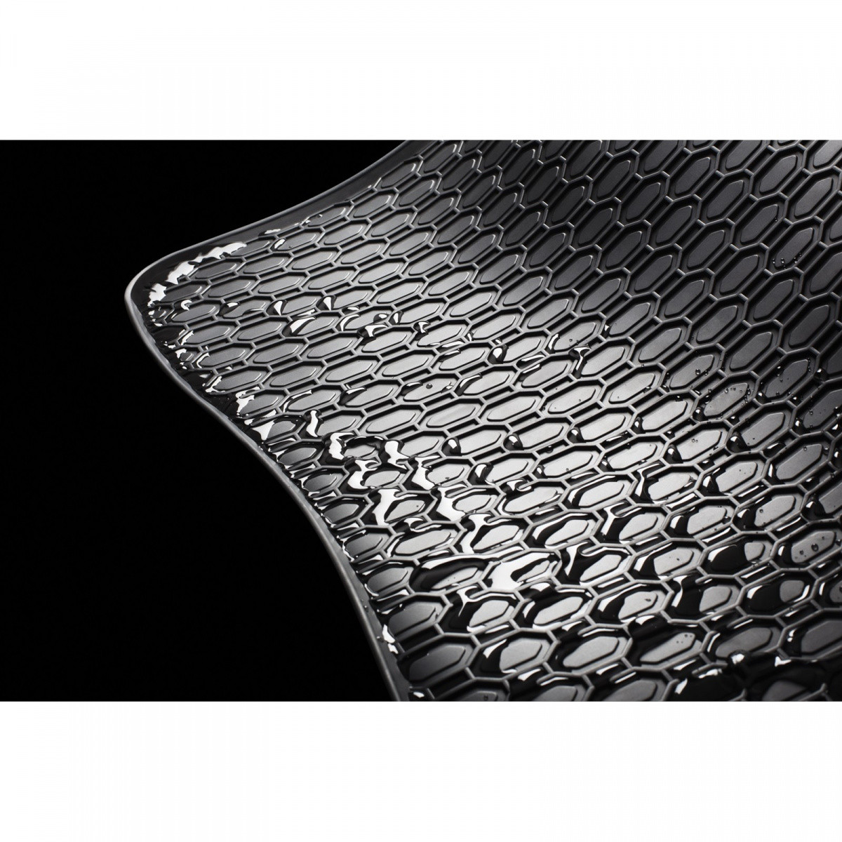 Robustní gumové autokoberce pro vůz Mercedes C-Class. Mají dezén ve tvaru pláství, díky kterému nedochází k přelévání vody nebo tajícího sněhu po kobercích. Okraj autokoberců je přibližně 1 cm vysoký.