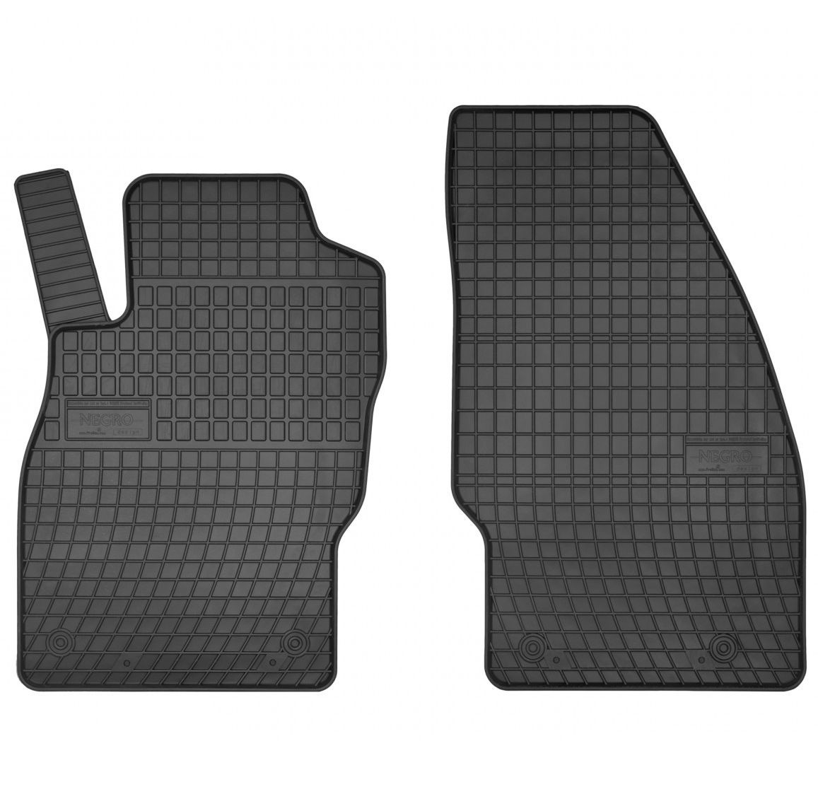 Gumové autokoberce pro vůz Opel Corsa E. Autokoberce mají tradiční (čtverčkovaný) design, díky kterému nedochází k přelévání vody, popř. tajícího sněhu po kobercích. Okraj autokoberců je přibližně 1 cm vysoký.