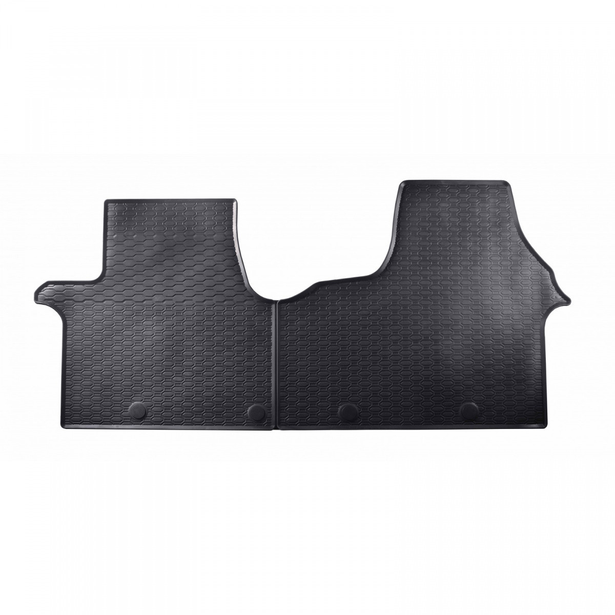 Robustní gumové autokoberce pro vůz Nissan NV300. Mají dezén ve tvaru pláství, díky kterému nedochází k přelévání vody nebo tajícího sněhu po kobercích. Okraj autokoberců je přibližně 1 cm vysoký.
