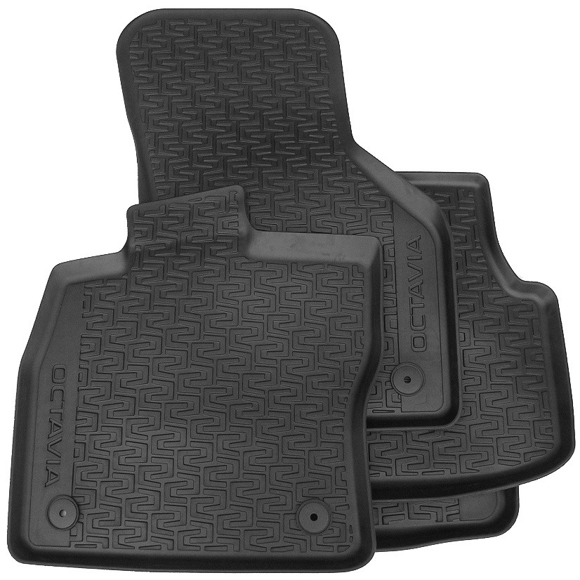 Originální gumové autokoberce pro vůz Škoda Octavia III., kterými je vůz vybaven z prvovýroby nebo jsou k dostání u oficiálních distributorů příslušenství pro vozy Škoda.