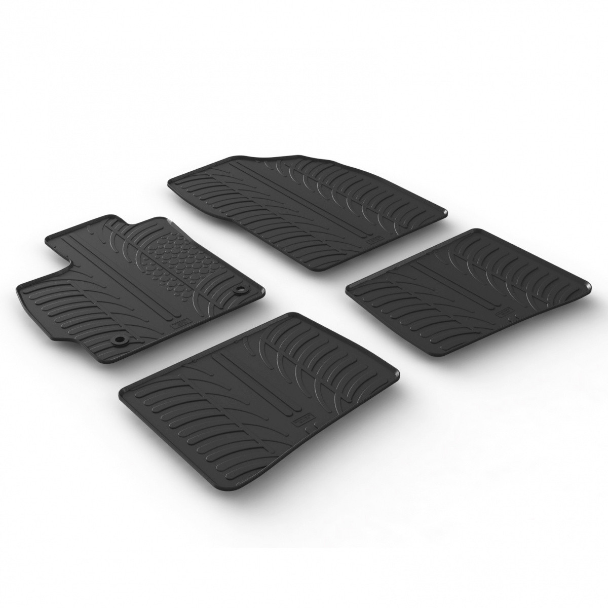 Gumové autokoberce Gledring pro vůz Toyota Prius, mají 1 cm vysoký okraj, který chrání původní koberec auta před vodou, tajícím sněhem a agresivní solí.