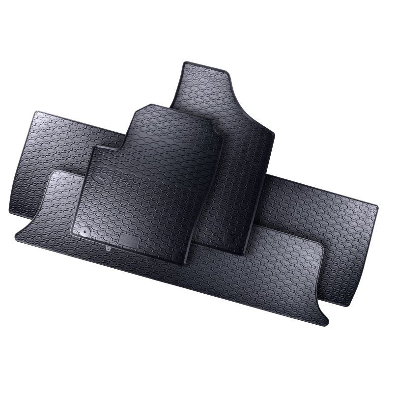 Robustní gumové autokoberce pro vůz Ford Galaxy. Mají dezén ve tvaru pláství, díky kterému nedochází k přelévání vody nebo tajícího sněhu po kobercích. Okraj autokoberců je přibližně 1 cm vysoký.