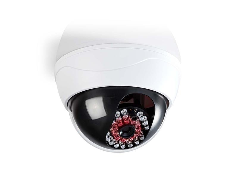 Atrapa venkovní kopulovité kamery pomáhá zastrašit narušitele. Má profesionální design, vyznačuje se vestavěnou blikající LED a lze ji snadno namontovat pomocí dodané konzole.