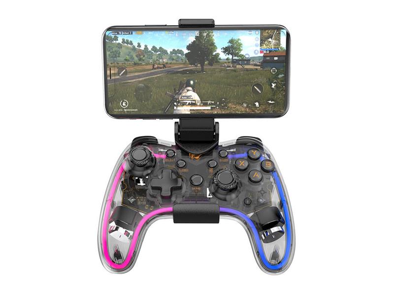 Ovladač Havit G180BT kombinuje estetiku a modernost. Průhledné pouzdro podtrhuje jeho futuristický charakter a barevné RGB osvětlení (s možností vypnutí) dodává individuální styl. Tento design nejen vypadá atraktivně, ale také umožňuje přizpůsobení zařízení, které odráží osobnost a preference hráče.