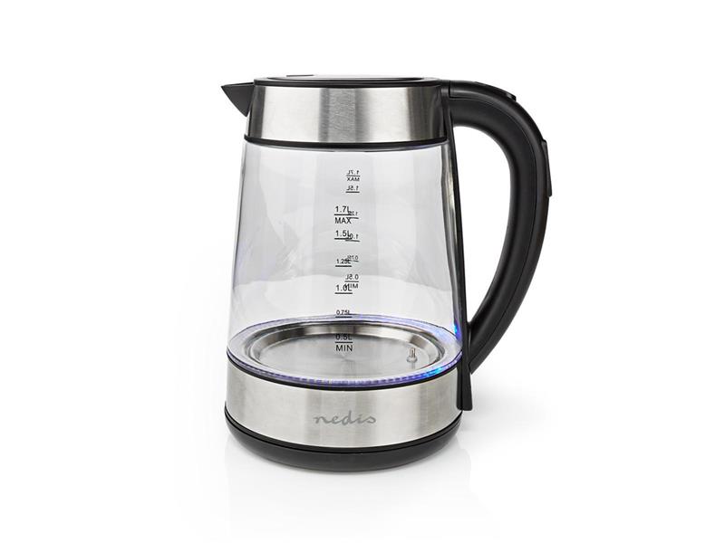 Stylová, výkonná Nedis rychlovarná konvice funguje stejně skvěle jako vypadá a nabízí štědrou kapacitu 1,7 l. Díky vysokému výkonu 2 200 W bude čaj připravený co nevidět. Modrá LED kontrolka signalizuje, když se konvice používá, a skleněná nádoba umožňuje přímo sledovat, kdy se voda vaří. Bezdrátová základna otočná o 360° usnadňuje zvedání. Skryté topné těleso minimalizuje usazování vodního kamene a v kombinaci s vyjímatelným filtrem zajišťuje velmi snadné čištění konvice a následně také stabilně skvělou chuť teplých nápojů.