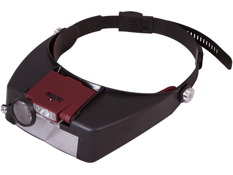 Náhlavní lupa Levenhuk Zeno Vizor H2 se k hlavě upevňuje pomocí speciální čelenky s nastavitelnou délkou. Lupa je vybavena LED osvětlením, které slouží k nasvícení pracovní plochy. Pomocí přepínače na těle lupy můžete osvětlení dle potřeby zapínat a vypínat.