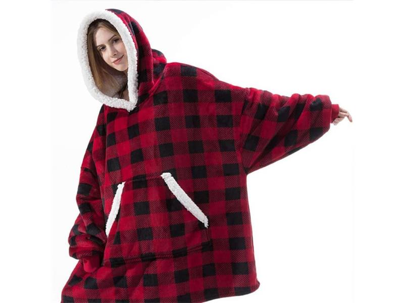 Hřejivá mikinová dekaTechnická specifikace:Šířka deky: 78 cmDélka (bez kapuce): 87 cmDélka rukávů: 50 cmVelikost: univerzálníPříjemný teplý materiálVzor: kostkovaná