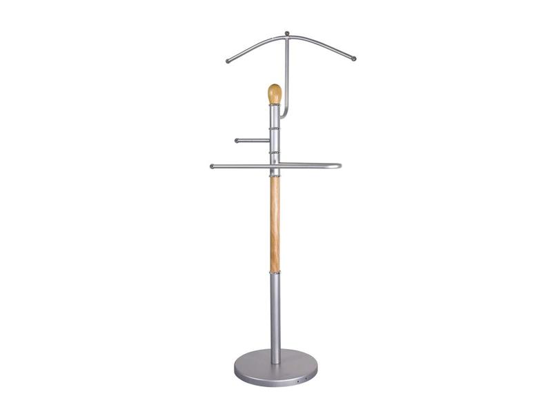 Němý sluha v provedení chromu a dřeva je praktický pomocník na odkládání oděvu a nejrůznějšího oblečení. Výška sluhy je 107 cm. Konstrukce má stabilní základnu, chrom je v matném provedení, dřevo ve světle hnědé barvě.