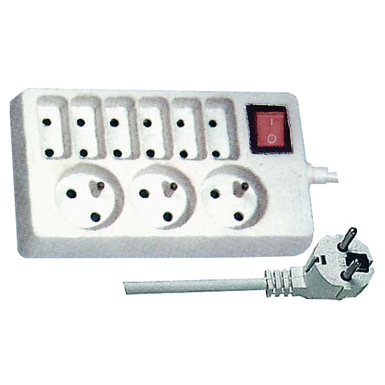 Prodlužovací přívod 3m-3x 3pól+6x 2pól.+vypínač